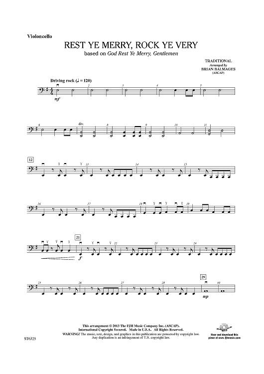 Digital Sheet Music for Rest Ye Merry, Rock Ye Very - Violoncello by Traditional, Brian Balmages scored for String Orchestra; id:437104