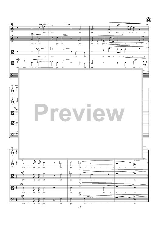 Digital Sheet Music for Resta di darmi noia - Score by Carlo Gesualdo, Kenneth Amis scored for String Quintet; id:365486