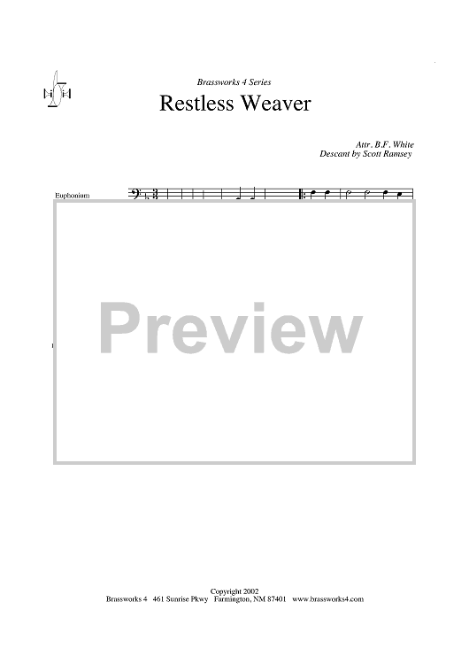 Digital Sheet Music for Restless Weaver - Euphonium by Benjamin F. White scored for Brass Quartet with Optional Descant; id:317282