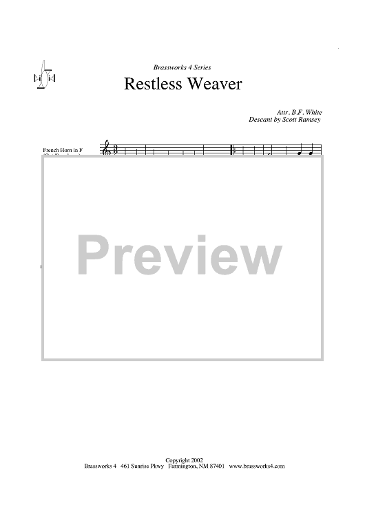 Digital Sheet Music for Restless Weaver - Horn in F by Benjamin F. White scored for Brass Quartet with Optional Descant; id:317281