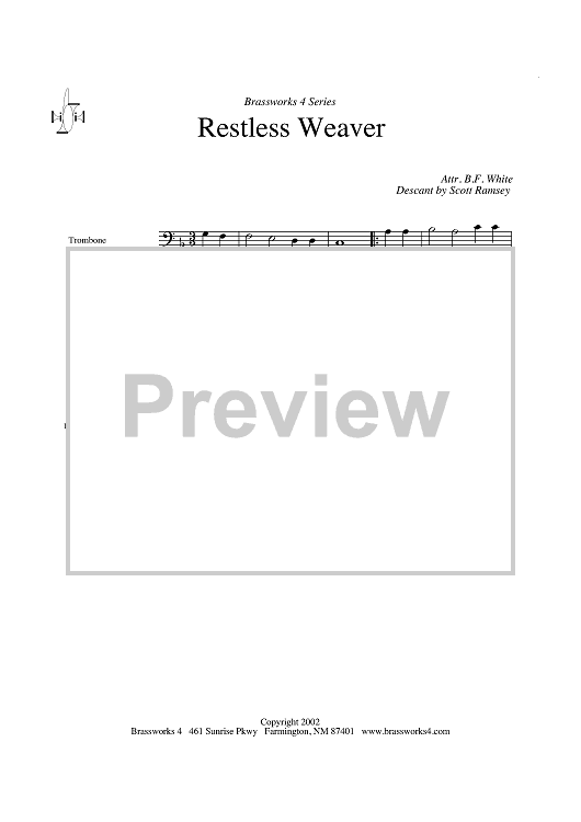 Digital Sheet Music for Restless Weaver - Trombone by Benjamin F. White scored for Brass Quartet with Optional Descant; id:317280