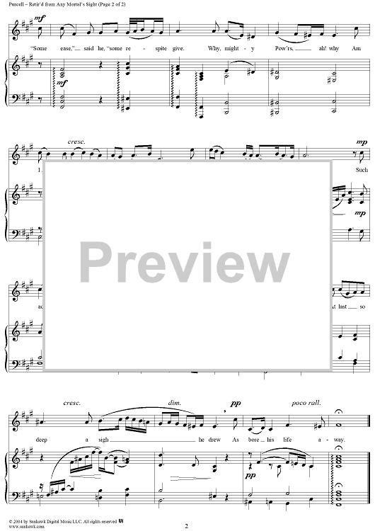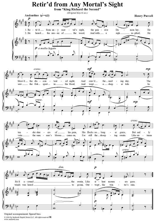 Digital Sheet Music for Retir'd from Any Mortal's Sight by Henry Purcell scored for Voice/Piano; id:303520