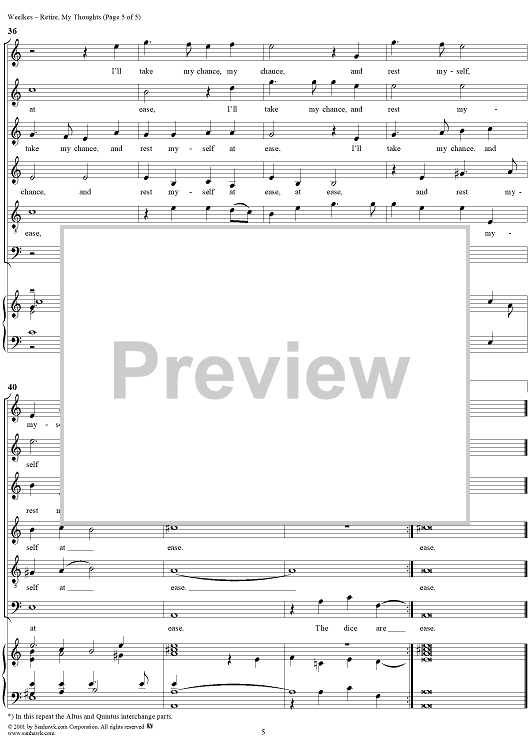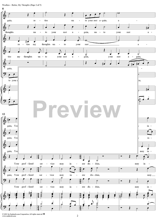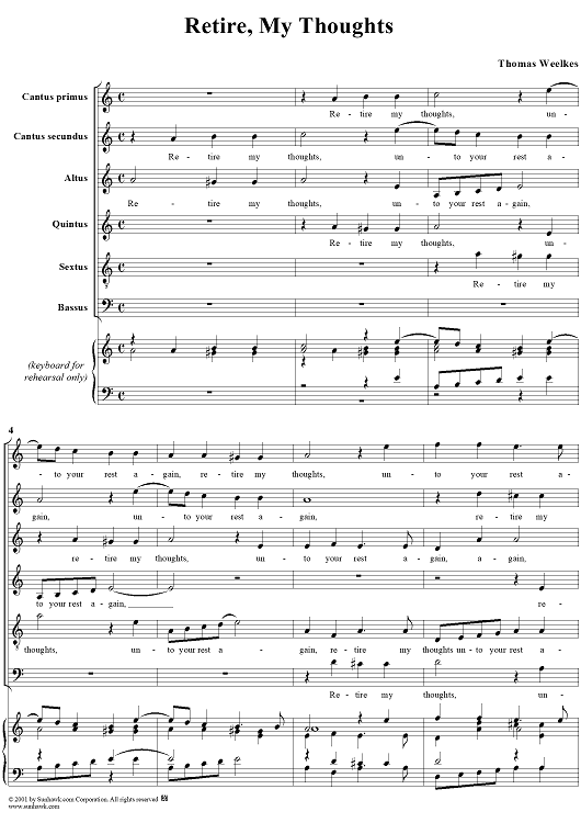 Digital Sheet Music for Retire My Thought by Thomas Weelkes scored for Six-part Mixed Chorus; id:262250