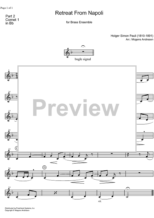 Digital Sheet Music for Retreat from Napoli - B-flat Cornet by Mogens Andresen, Holger Simon Pauli scored for Brass Ensemble; id:322117