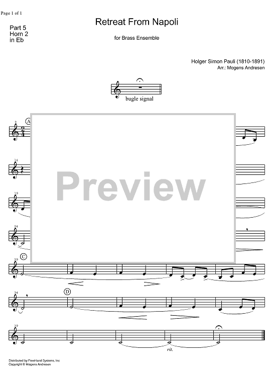 Digital Sheet Music for Retreat from Napoli - Horn in E-flat by Mogens Andresen, Holger Simon Pauli scored for Brass Ensemble; id:322121