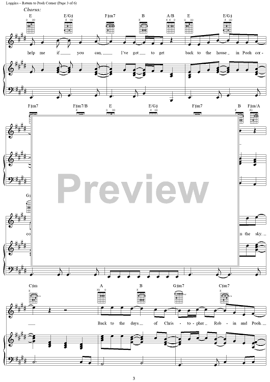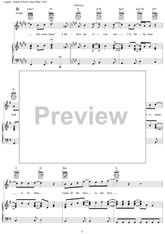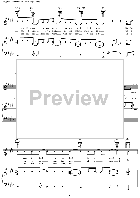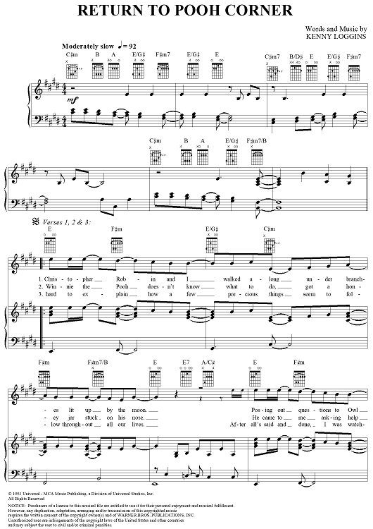 Digital Sheet Music for Return to Pooh Corner by Kenny Loggins scored for Piano/Vocal/Chords; id:203696