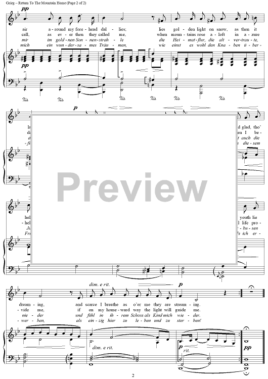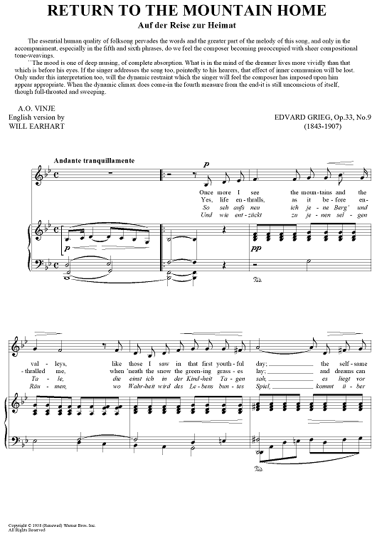 "Return To The Mountain Home (Auf der Reise zur Heimat)" Sheet Music by Edvard Grieg