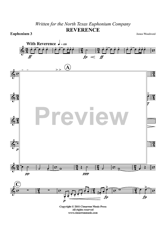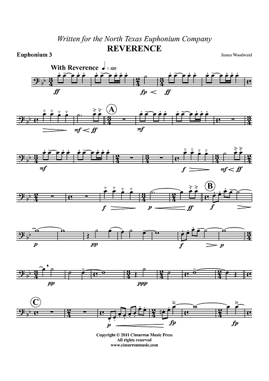 Digital Sheet Music for Reverance - Euphonium 3 BC/TC by James Woodward scored for Euphonium Ensemble; id:427609