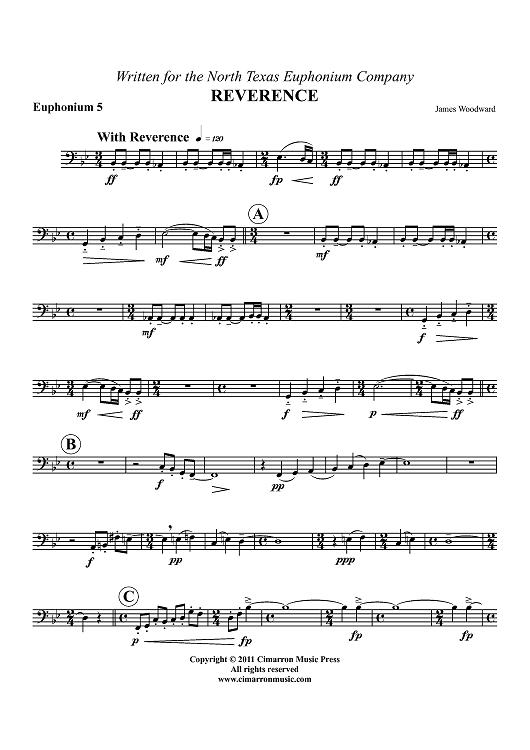 Digital Sheet Music for Reverance - Euphonium 5 BC/TC by James Woodward scored for Euphonium Ensemble; id:427611