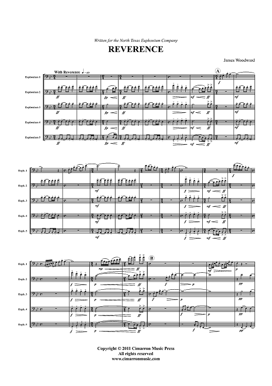 Digital Sheet Music for Reverance - Score by James Woodward scored for Euphonium Ensemble; id:427606