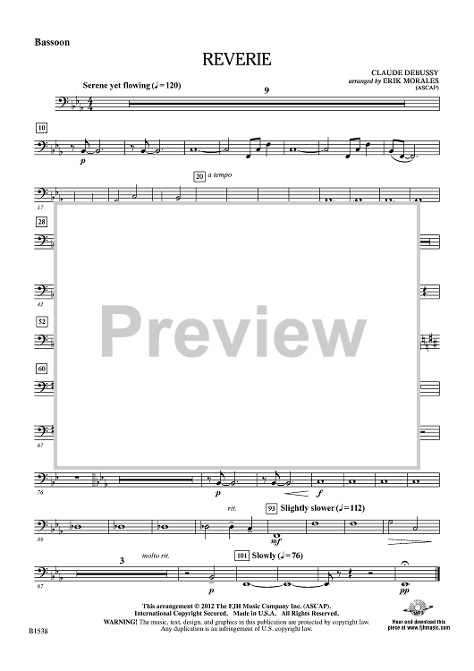 Digital Sheet Music for Reverie - Bassoon by Claude Debussy, Erik Morales scored for Concert Band; id:440754