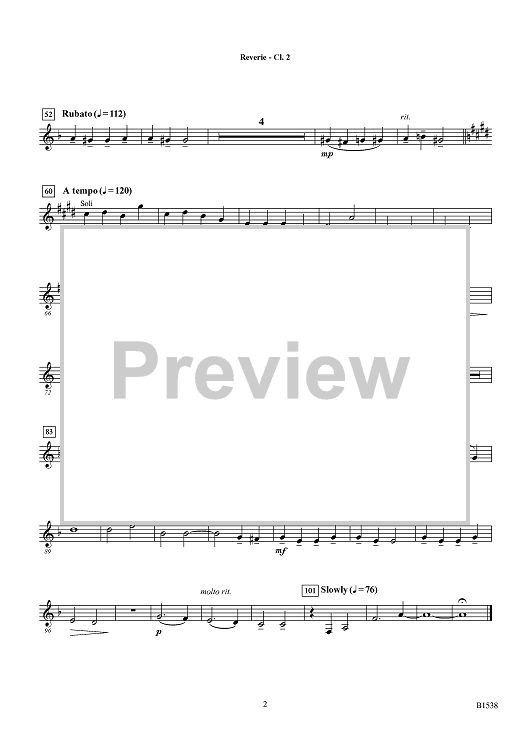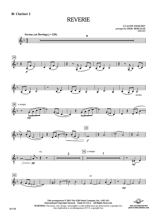 Digital Sheet Music for Reverie - Bb Clarinet 2 by Claude Debussy, Erik Morales scored for Concert Band; id:440756