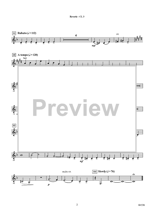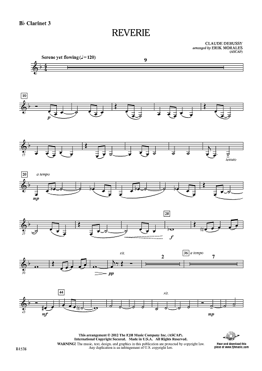 Digital Sheet Music for Reverie - Bb Clarinet 3 by Claude Debussy, Erik Morales scored for Concert Band; id:440757