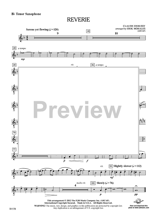 Digital Sheet Music for Reverie - Bb Tenor Sax by Claude Debussy, Erik Morales scored for Concert Band; id:440761