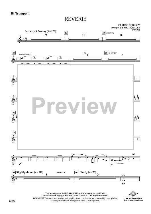 Digital Sheet Music for Reverie - Bb Trumpet 1 by Claude Debussy, Erik Morales scored for Concert Band; id:440763