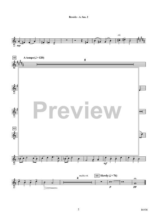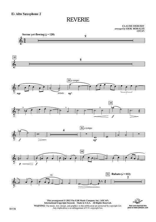 Digital Sheet Music for Reverie - Eb Alto Sax 2 by Claude Debussy, Erik Morales scored for Concert Band; id:440760
