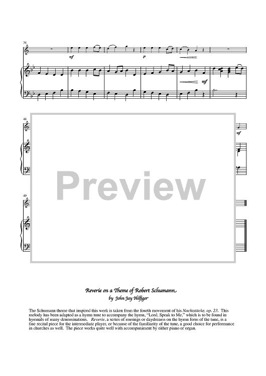 Digital Sheet Music for Reverie on a Theme of Robert Schumann - Piano Score by John Jay Hilfiger scored for Trumpet/Piano; id:361521