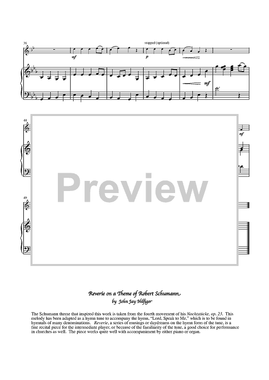 Digital Sheet Music for Reverie on a Theme of Robert Schumann - Piano Score by John Jay Hilfiger scored for Horn/Piano; id:361525