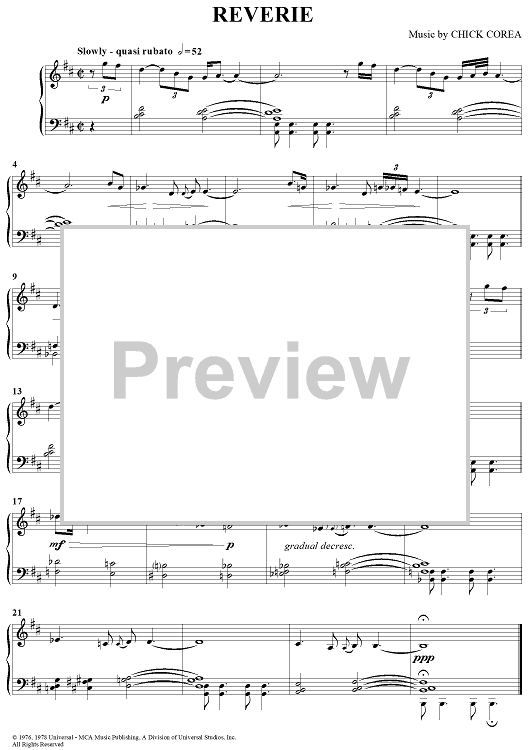 Digital Sheet Music for Reverie by Chick Corea scored for Piano Solo; id:292205
