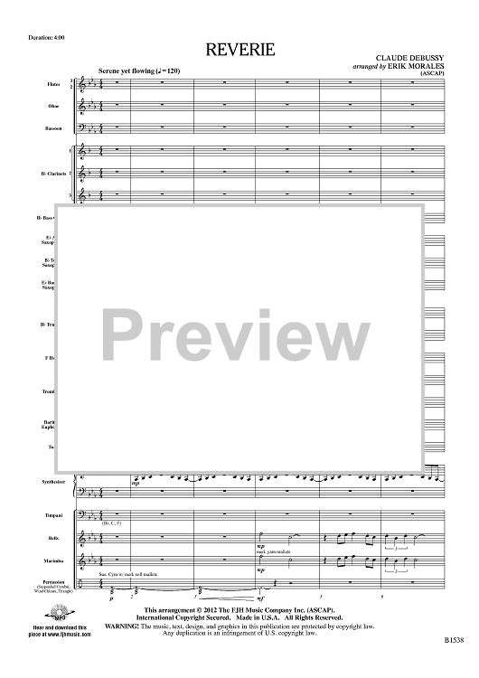 Digital Sheet Music for Reverie - Score by Claude Debussy, Erik Morales scored for Concert Band; id:440749