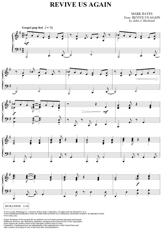 Digital Sheet Music for Revive Us Again by Mark Hayes, John J. Husband scored for Piano Solo; id:433378