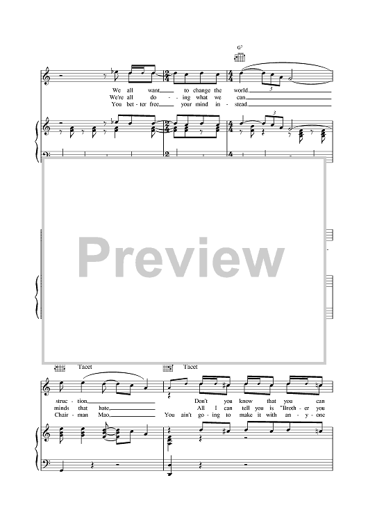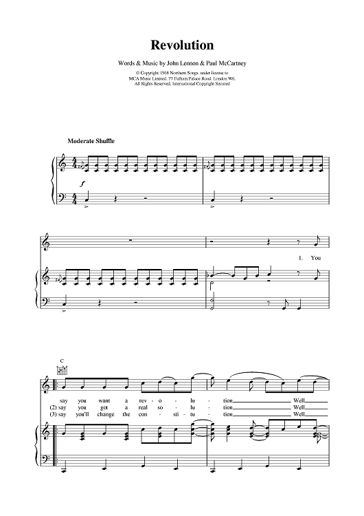 Digital Sheet Music for Revolution by Paul McCartney, The Beatles, John Lennon scored for Piano/Vocal/Chords; id:375811