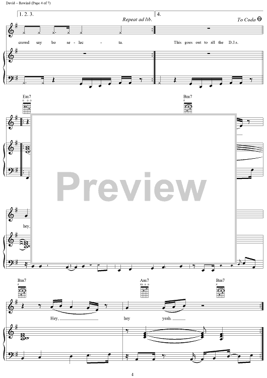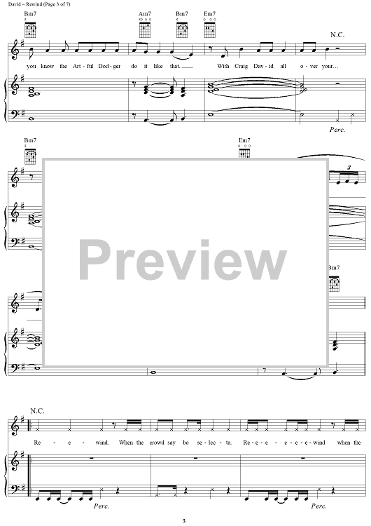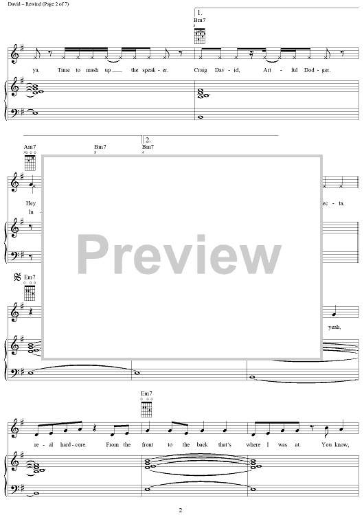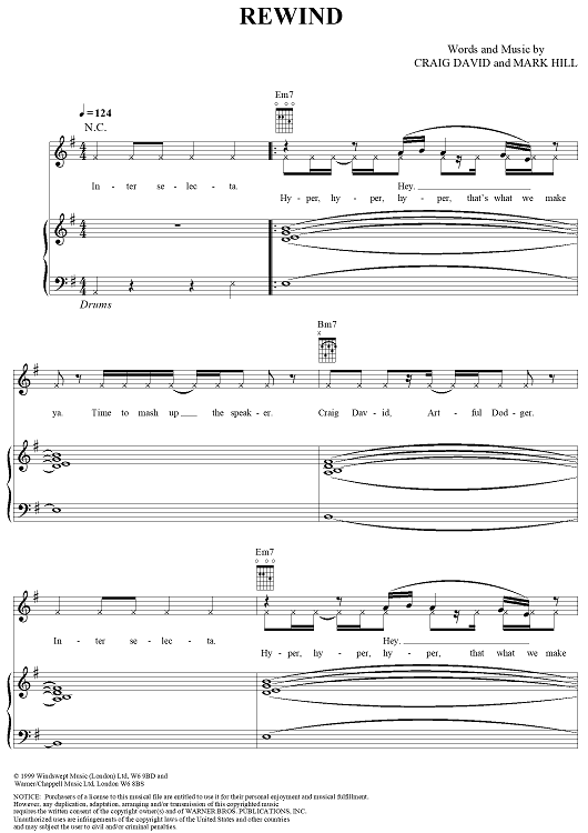 Digital Sheet Music for Rewind by Craig David, Mark Hill scored for Piano/Vocal/Chords; id:284950