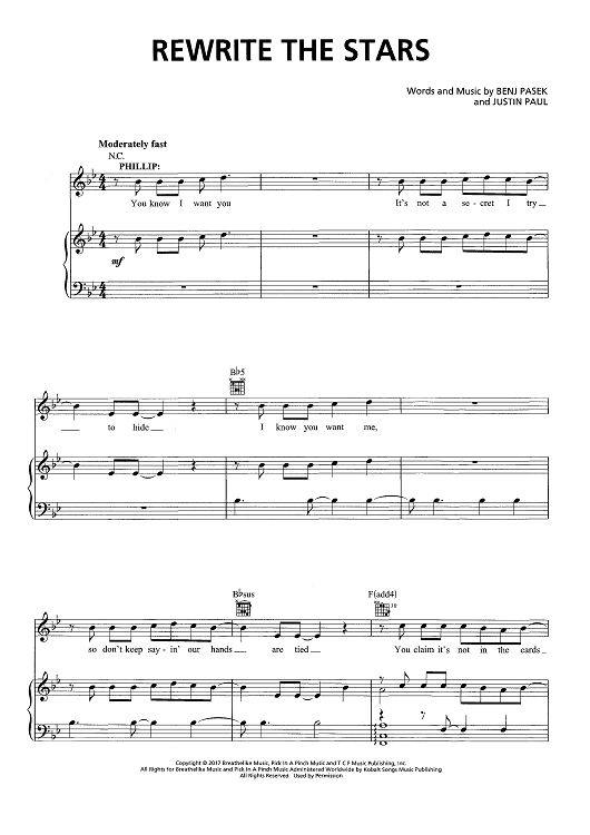 "Rewrite The Stars - from The Greatest Showman" Sheet Music by Benj Pasek