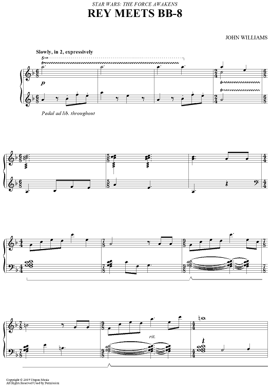 Digital Sheet Music for Rey Meets BB-8 by John Williams scored for Piano Solo; id:456334