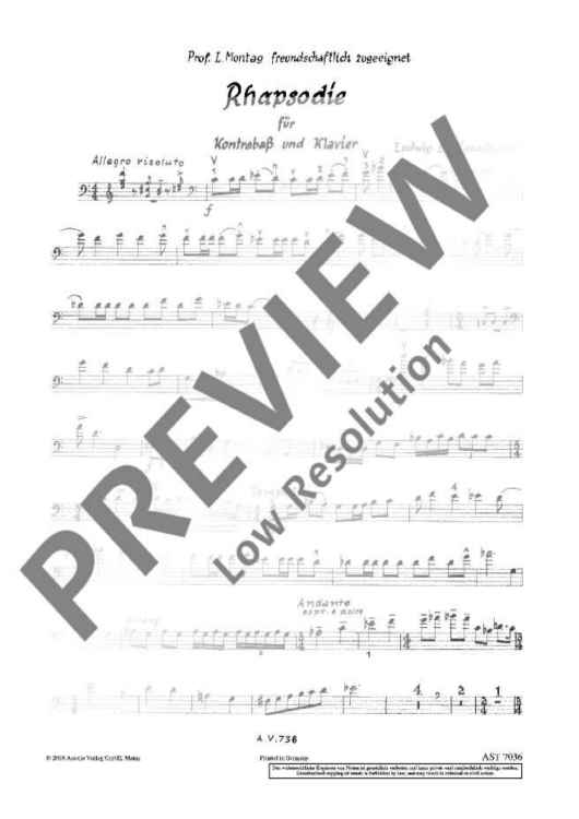Digital Sheet Music for Rhapsodie - Score and Parts by Lajos Vasady-Balogh scored for Double Bass And Piano; id:492943