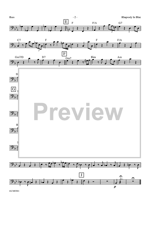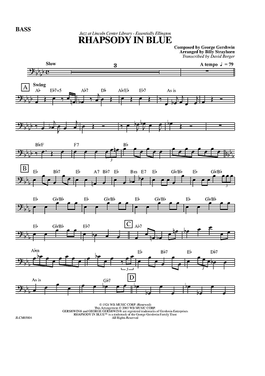 Digital Sheet Music for Rhapsody in Blue - Bass by George Gershwin, Billy Strayhorn scored for Jazz Ensemble; id:358447