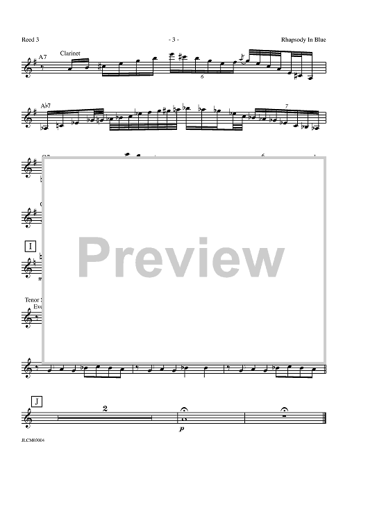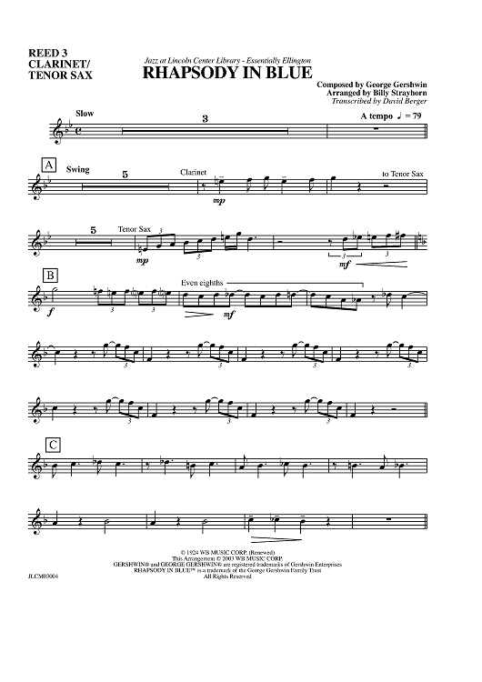 Digital Sheet Music for Rhapsody in Blue - Clarinet/Tenor Sax 1 by George Gershwin, Billy Strayhorn scored for Jazz Ensemble; id:358436