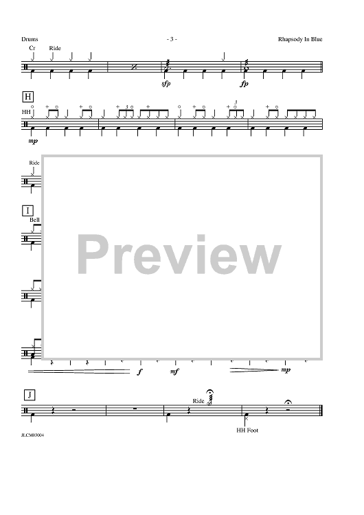 Digital Sheet Music for Rhapsody in Blue - Drums by George Gershwin, Billy Strayhorn scored for Jazz Ensemble; id:358448