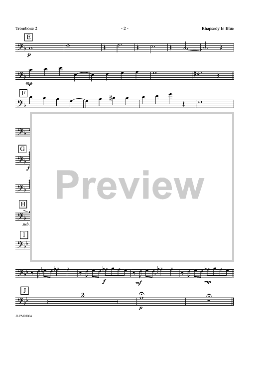Digital Sheet Music for Rhapsody in Blue - Trombone 2 by George Gershwin, Billy Strayhorn scored for Jazz Ensemble; id:358444