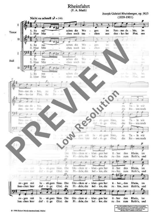 Digital Sheet Music for Rheinfahrt - Score by Joseph Gabriel Rheinberger scored for Men's Choir (ttbb); id:479928