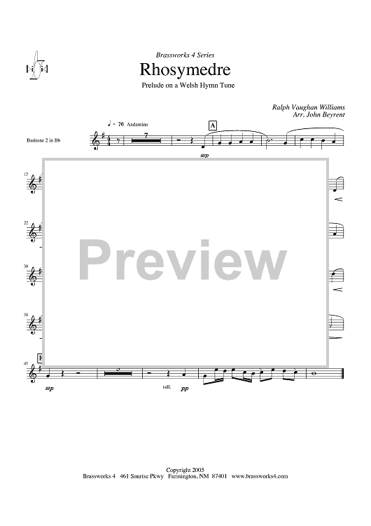 Digital Sheet Music for Rhosymedre - Prelude on a Welsh Hymn Tune - Baritone 2 in Bb by Ralph Vaughan Williams, John Beyrent scored for Brass Ensemble; id:428341