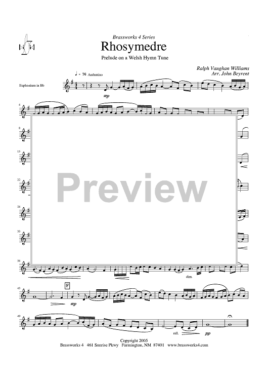 Digital Sheet Music for Rhosymedre - Prelude on a Welsh Hymn Tune - Euphonium in Bb by Ralph Vaughan Williams, John Beyrent scored for Brass Ensemble; id:428345