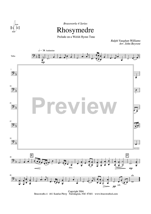 Digital Sheet Music for Rhosymedre - Prelude on a Welsh Hymn Tune - Tuba by Ralph Vaughan Williams, John Beyrent scored for Brass Ensemble; id:428232