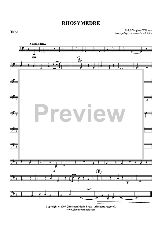 "Rhosymedre - Tuba" Sheet Music by Ralph Vaughan Williams