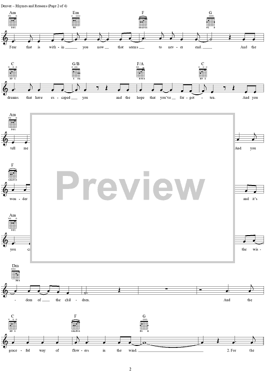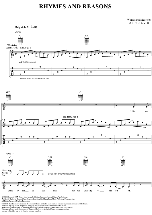 Digital Sheet Music for Rhymes and Reasons by John Denver scored for Guitar Tab/Vocal; id:287735