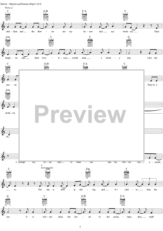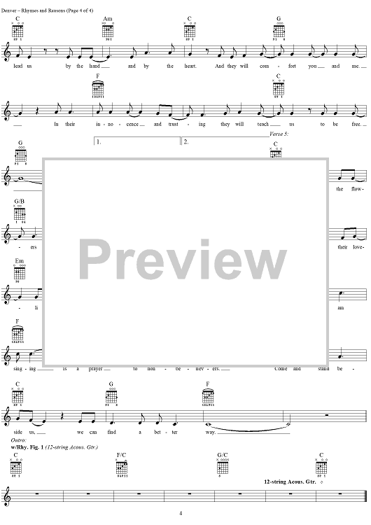 "Rhymes and Reasons" Sheet Music by John Denver