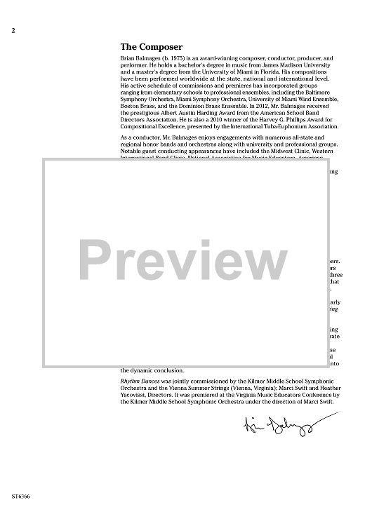 Digital Sheet Music for Rhythm Dances - Score by Brian Balmages scored for Orchestra; id:455517