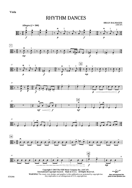 "Rhythm Dances - Viola" Sheet Music by Brian Balmages