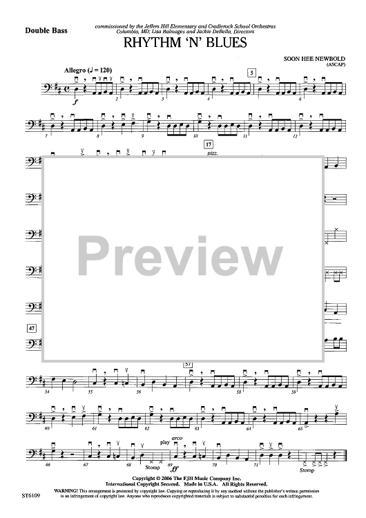 "Rhythm 'n' Blues - Double Bass" Sheet Music by Soon Hee Newbold