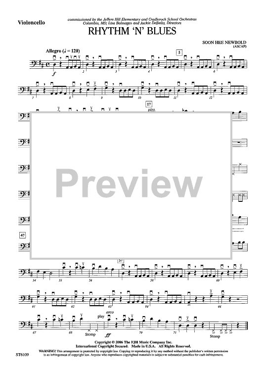 Digital Sheet Music for Rhythm 'n' Blues - Violoncello by Soon Hee Newbold scored for String Orchestra; id:441953
