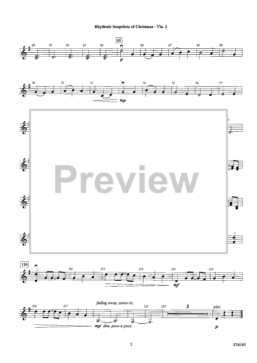 Digital Sheet Music for Rhythmic Snapshots of Christmas - Violin 2 by Traditional, Brian Balmages scored for String Orchestra; id:441130