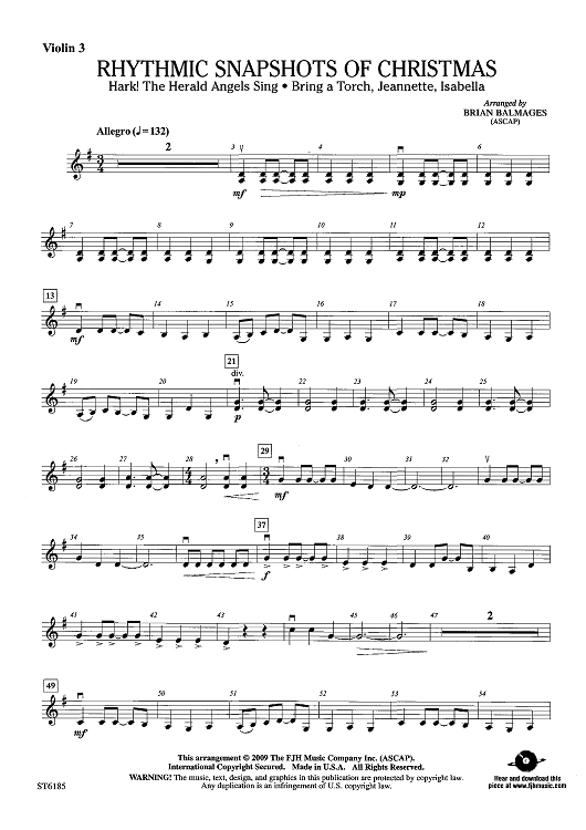 Digital Sheet Music for Rhythmic Snapshots of Christmas - Violin 3 (Viola T.C.) by Traditional, Brian Balmages scored for String Orchestra; id:441131