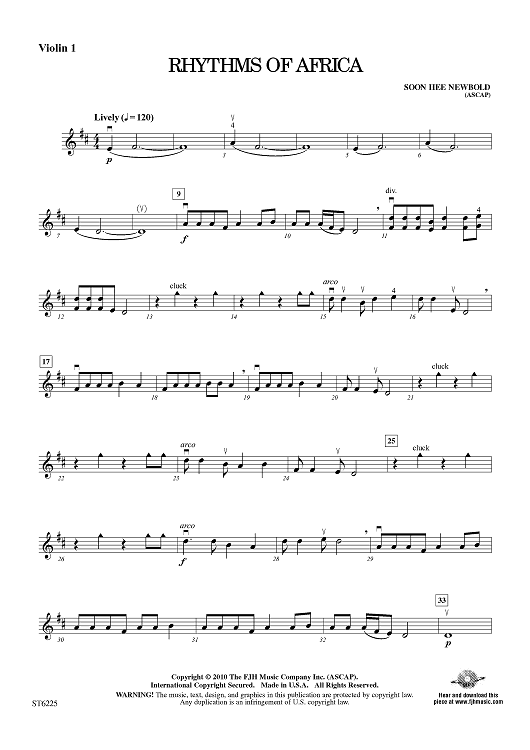 "Rhythms of Africa - Violin 1" Sheet Music by Soon Hee Newbold