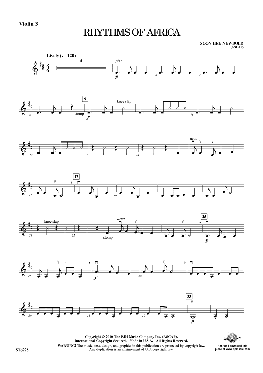 "Rhythms of Africa - Violin 3 (Viola T.C.)" Sheet Music by Soon Hee Newbold