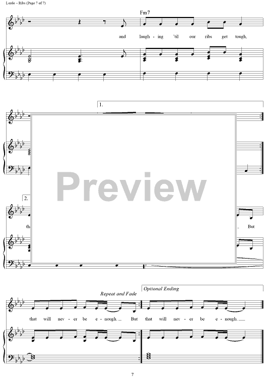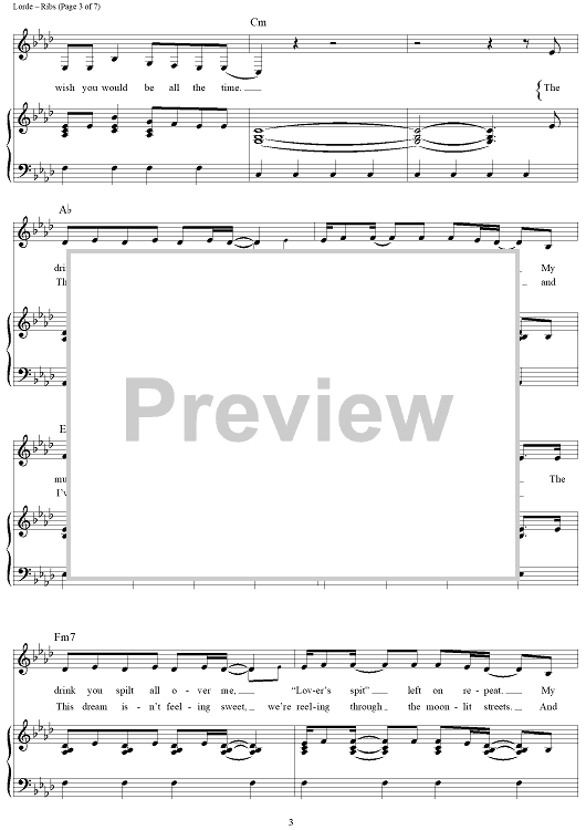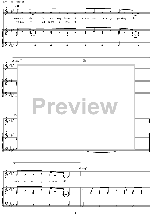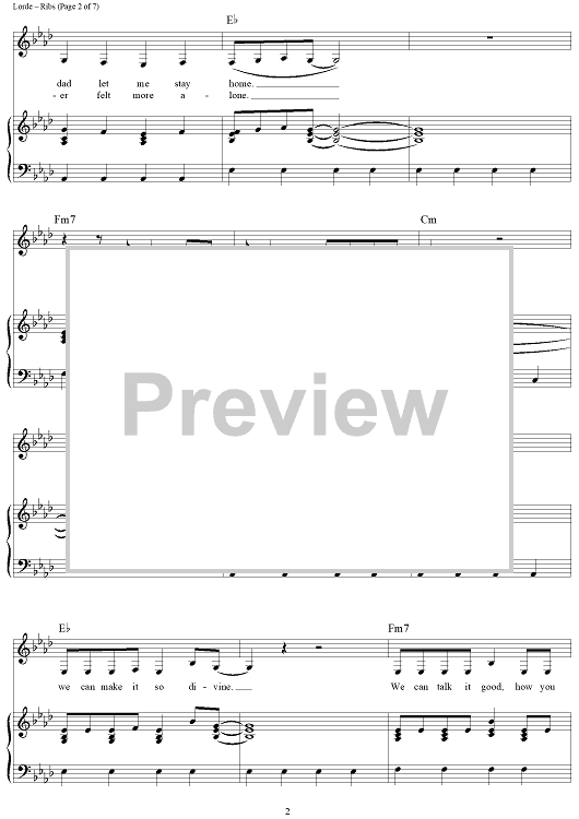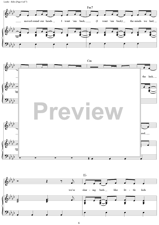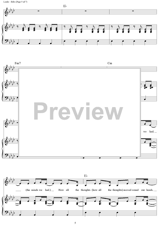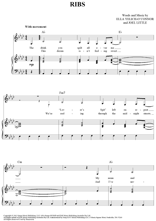 Digital Sheet Music for Ribs by Lorde, Joel Little, Ella Yelich-O'Connor scored for Piano/Vocal/Chords; id:439708